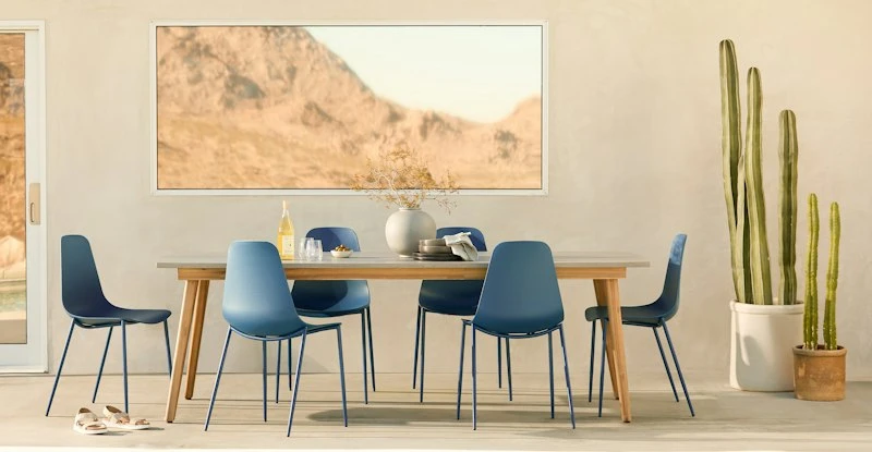 Natural elegance with an edge of industrial chic. The Atra features acacia wood legs and a polystone top. Equal parts durable and beautiful, the Atra table is as well-suited for a beautiful meal as it is for a raucous game night under the stars.