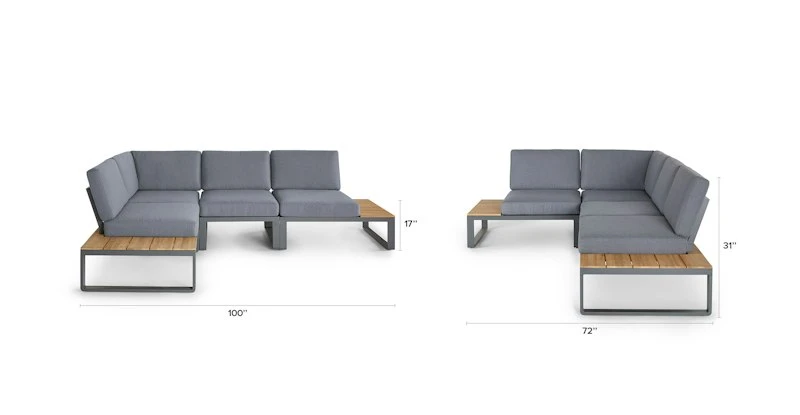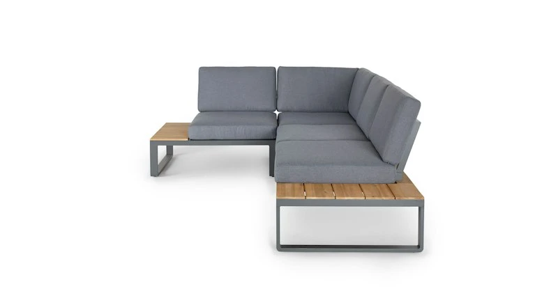 The Kezia Whale Gray sectional gives you all the freedom to lounge how you like, when you like. Maybe you’re stretched out on the chaise while your husband and his rowdy friends chest bump during the big game. Perhaps you’re curled up with a book while your toddlers make mud pies (not an euphemism) in the sandbox. Your friends might be gathered on your rooftop deck celebrating a conscious uncoupling. Whatever the outside brings, you’ve got the tough aluminum base, acacia wood construction, and built-in side table of the Kezia by your side.