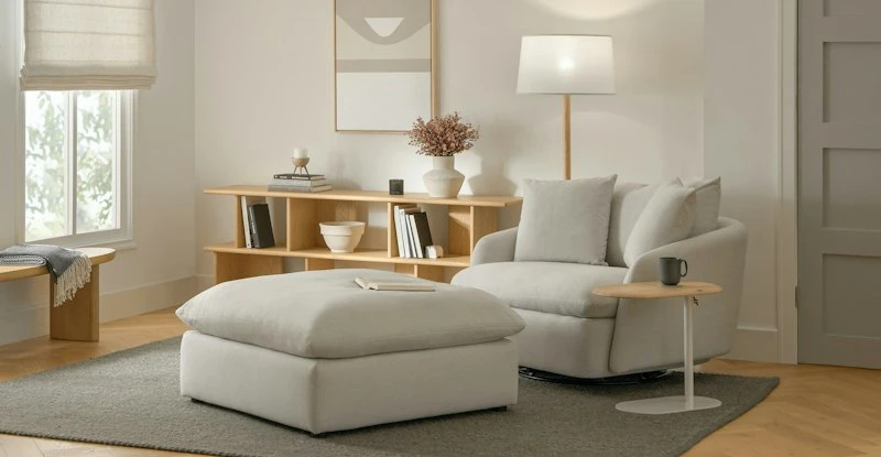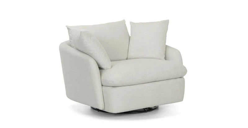 Cloud kingdom, population: you. The Leigh swivel chair is our comfiest chair ever, with thoughtful details that make it the perfect place to put your feet up and read/watch a show/stare into the middle distance. Upholstered with stain-resistant SimpleCare fabric, the Leigh is here to help you to rest easy.