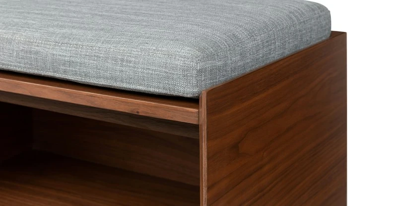 Put it away, put it away, put it away, now. The Nederin bench is the beautiful workhorse that your foyer or mudroom deserves. A broad storage compartment is accessed by a sliding solid wood panel so you can show-off your shoe collection at your leisure. Topped with a cozy foam cushion, the Nederin bench can also act as extra seating, in a pinch.