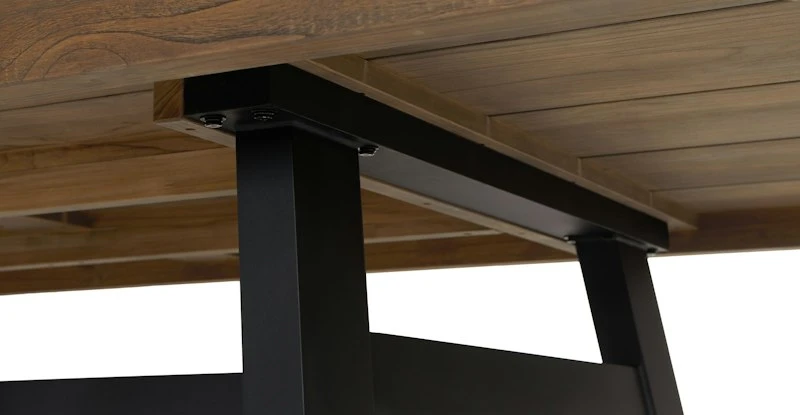 Pull up a seat. With powder-coated aluminum legs and a chunky slatted teak top, the Sardis Dining Set is sleek, sturdy, and supportive. What more could you ask for from a dining set? Plenty of space for all your VIP guests? No problem.